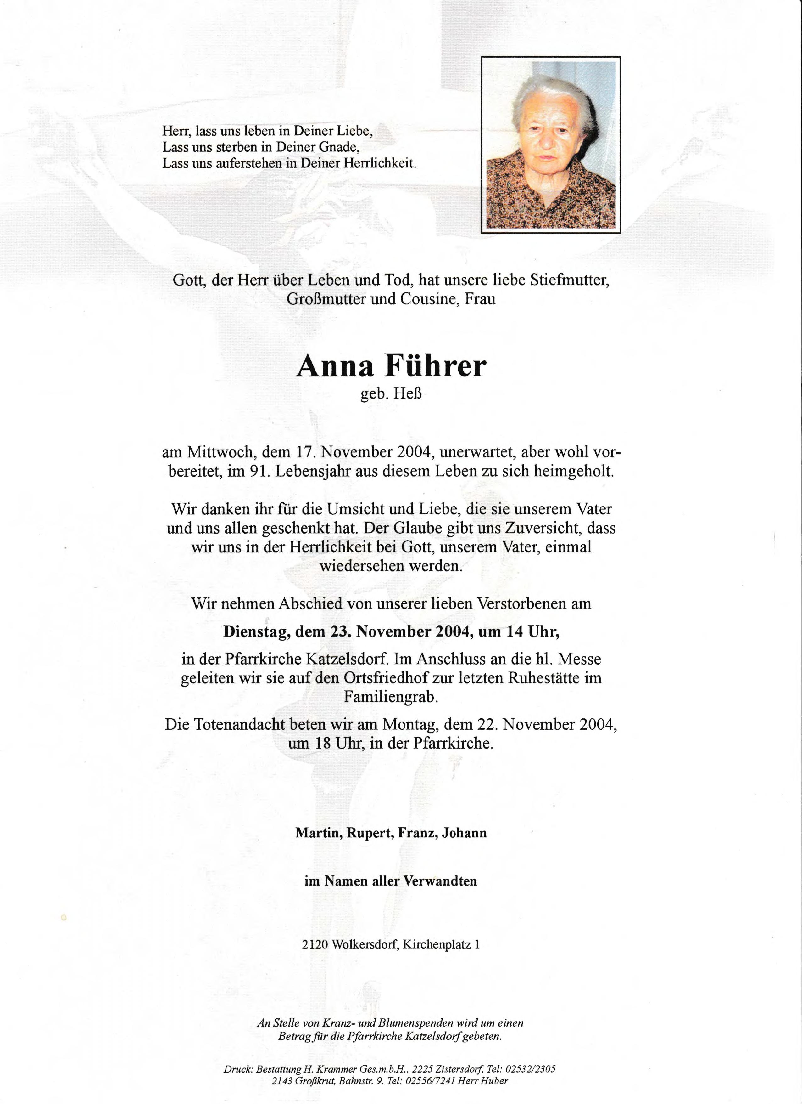 11 Führer Anna (Heß) Hauptstraße 54 - *23.04.1914 +17.11.2004 |