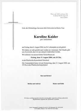 8 ![]() Kaider Karoline (Schliefelner) Hauptstraße 112 - *19.12.1910 +06.08.2004 |