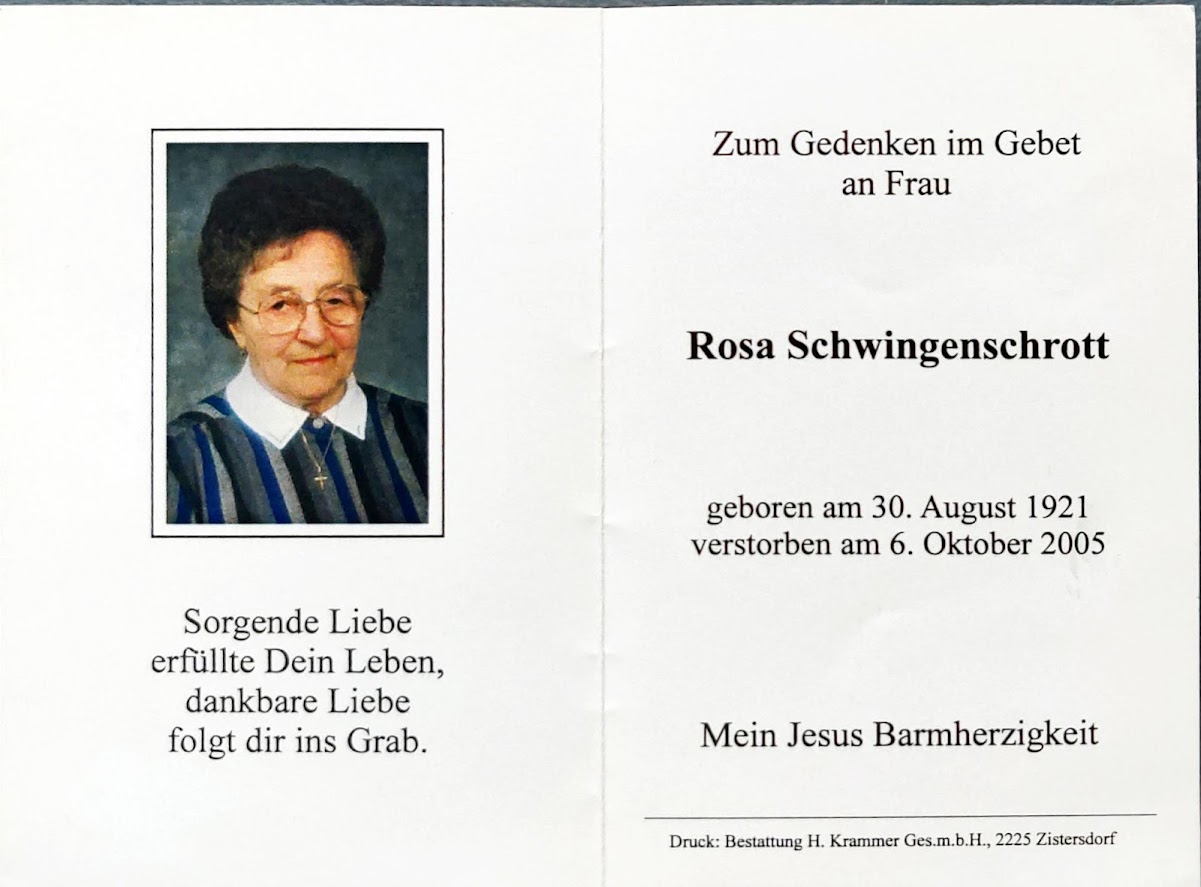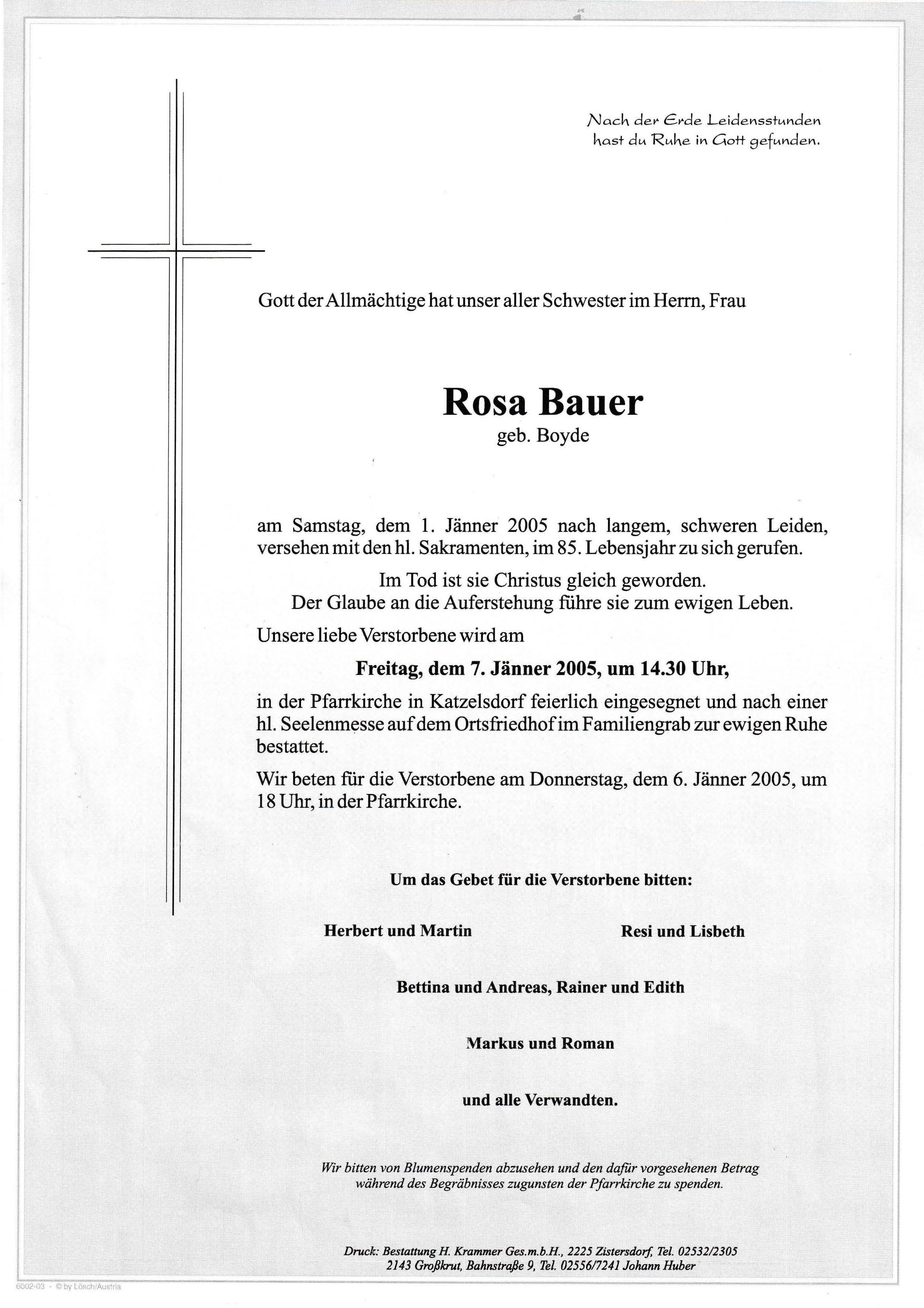 1 Bauer Rosa (Boyde) Hauptstraße 18 Katzelsdorf - Bernhardsthal 60 - *01.03.1920 +01.01.2005 |