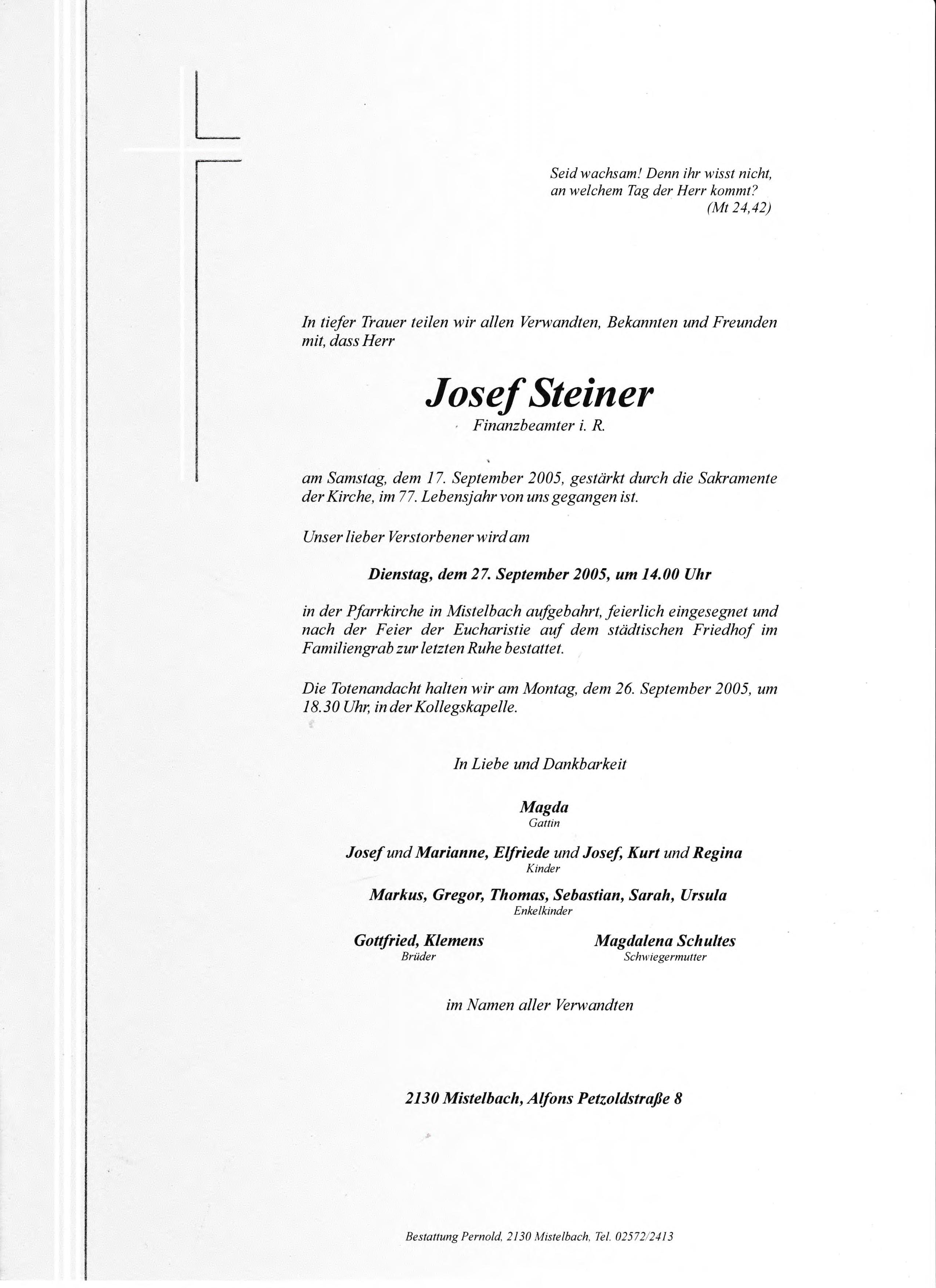 Paulhart Josef Hauptstraße 11 - *15.12.1919 +28.01.2005 |