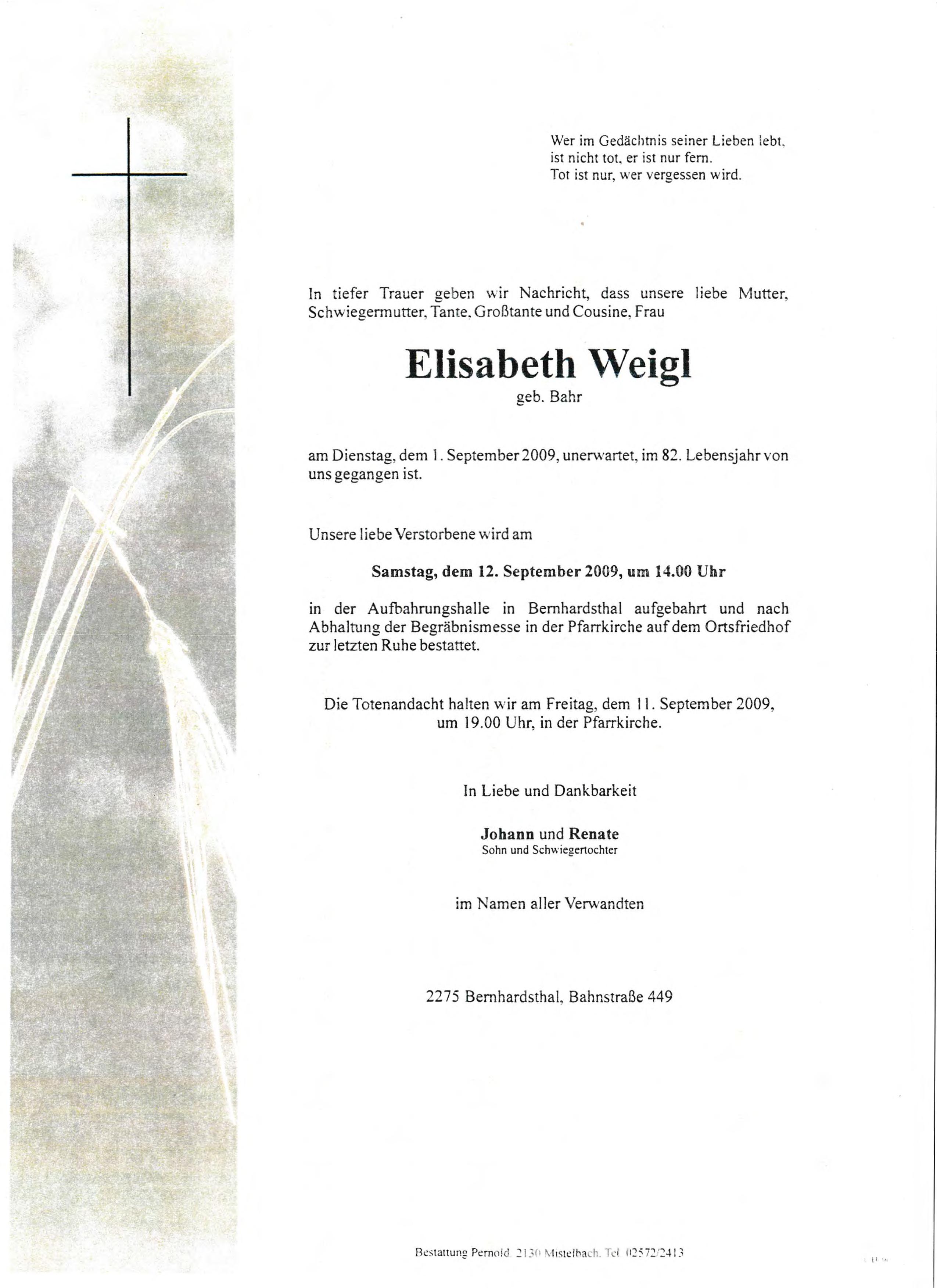 9 Wildbachweg 220 Katzelsdorf - Bahnstraße 449 Bernhardsthal - *23.04.1928 +01.09.2009 |