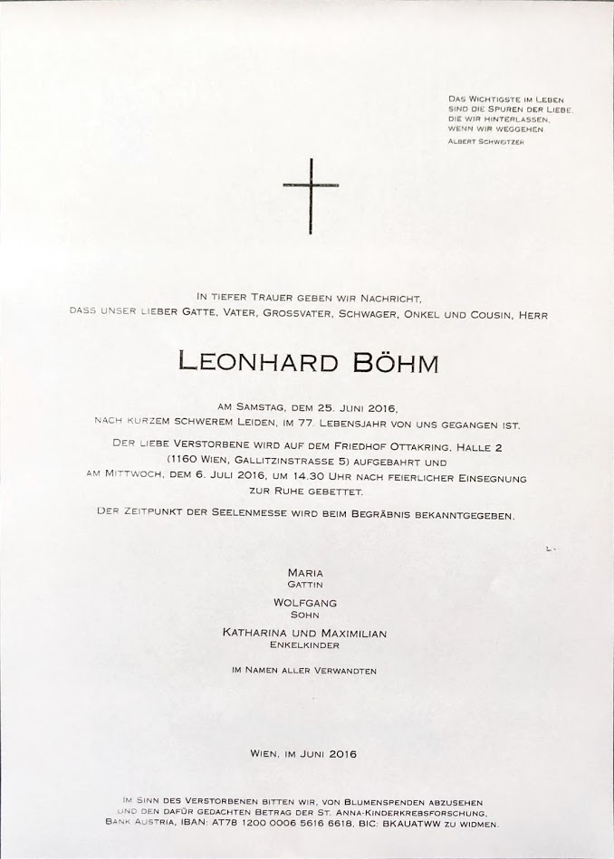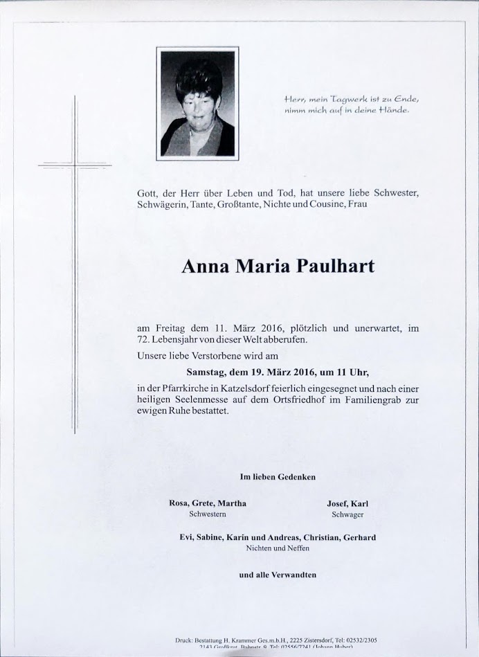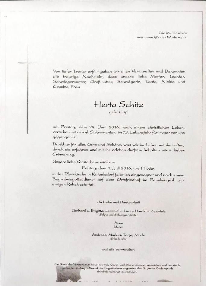 3 Hauptstraße 46 Katzelsdorf - Strasshof - *18.07.1939 +24.03.2016 |