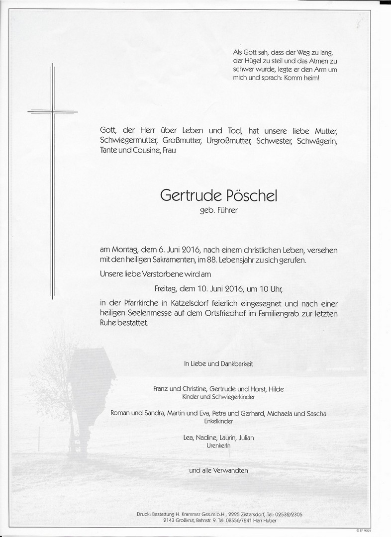 7 Pöschel Gertrude (Führer) Haupstraße 235 - *14.11.1928 +06.06.2016 |