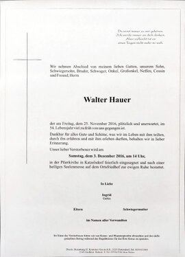 Hauer Walter Hamethof 167 - *24.09.1963 +25.11.2016 |