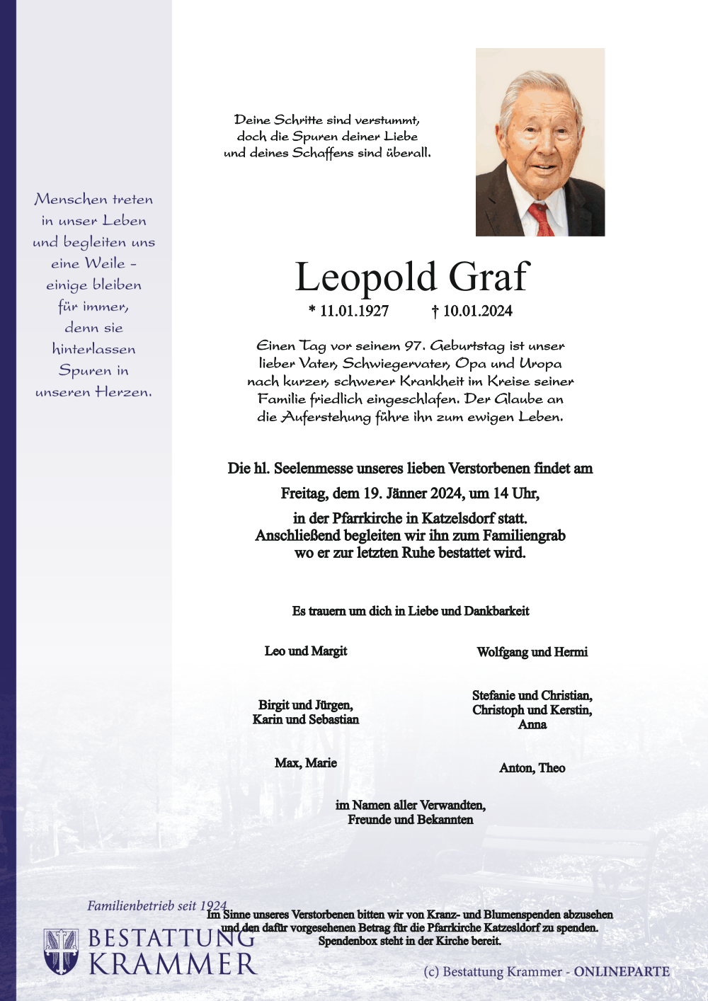 Graf Leopold Hauptstraße 9 - *11.01.1927 +10.01.2024 |